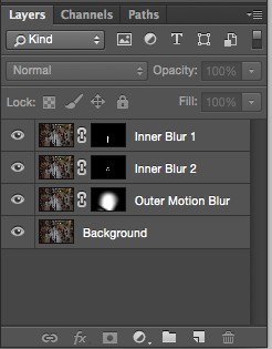 So in changing my approach to the image above, I can start by duplicating the background layer and converting it to a smart object, and proceed to apply the smart filters and effects, starting with motion blur. But in this particular case, when I apply a smart filter, it comes with both a layer mask and a separate layer that contains the actual smart filter. This means, I have more leverage here. I can apply a smart filter, hide or reveal a part of it with its own layer mask, and still return later in the editing process should I need to change any of these settings, that is not destructive.